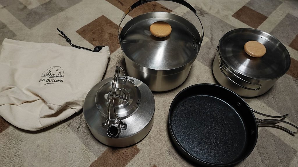 先にも書きましたが、自分的にはセット自体は悪くないと思います。もう傷だらけなので気を使う必要もないです。大きさは2~3人のファミリーキャンプならこのセットで十分な感じでしょうか。