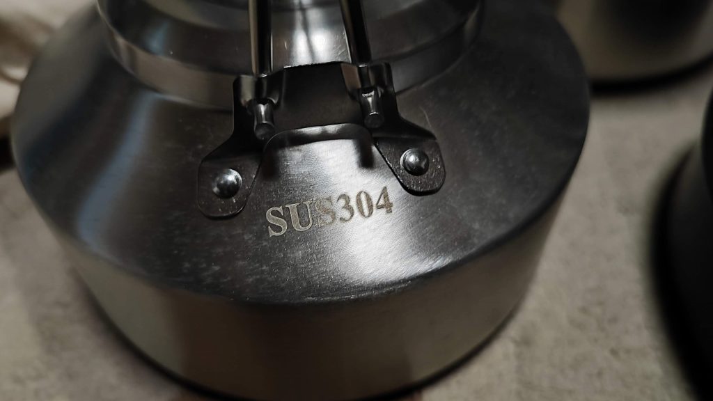 ケトルに SUS304の表記が刻印されています。これが、逆に怪しさを増してしまっています!?