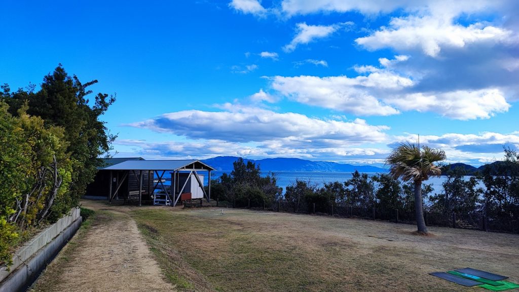 旅費削減を考えて阪神高速から第2神明道路・姫路バイパスを経由し目的地へ、午前はかなり激しい雨が降っていたこともあり神戸あたりで大渋滞に巻き込まれ、ようやくPM2時過ぎに赤穂付近に到着。島にはコンビニとかもなさそうなので、ラムー赤穂店・コスモスなどで2・3日分の食料を確保。