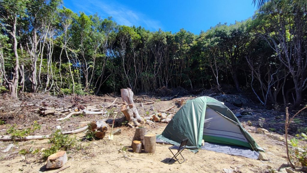まず最初に行ったのは、キャンプサイトの清掃です。スコップを使って雑草を取り除き、不要な石を除去しました。次に、スコップを使って地面を平らにし、テントを張るためのスペースを確保しました。この作業は時間と労力を要しましたが、自分の手で作り上げるという達成感は何物にも代えがたいものでした。