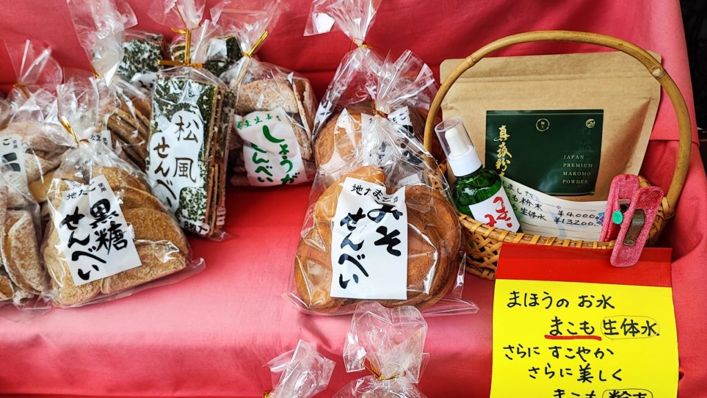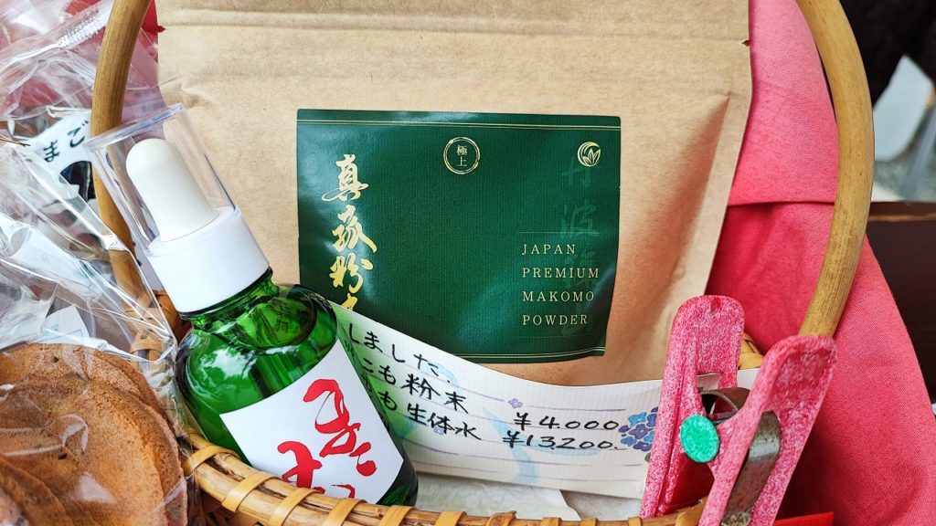 新商品の真菰茶の説明を熱心に聞いて、その効能に驚き、少々高価でしたが購入。こういう場所でのお買い物は、きっとご利益があるはず!