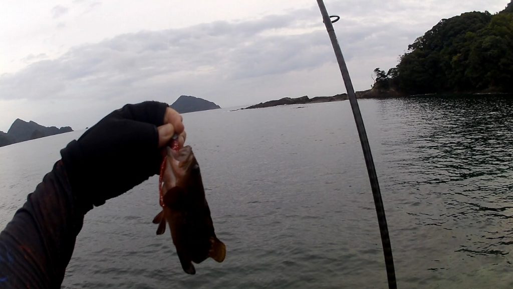 その後もガシラサイズのアコウがポンポン釣れる。これはこれで楽しいのだが、サイズが小さいので当然リリース。地合いが過ぎるとアコウのあたりはピタリと止まり、見た目が怖いオハグロベラが連続ヒットした。見た目とは裏腹に意外においしい魚らしいが、今回はリリース。
