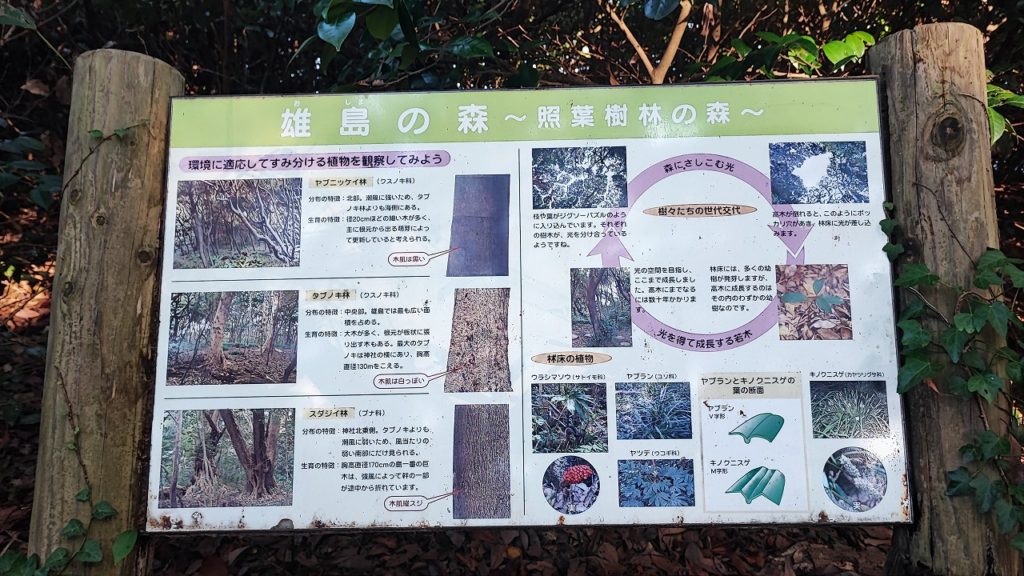 島に渡り、ぐるっと一周してみることに。鳥居をくぐり、長い石の階段を上っていく。雨の日などは滑らないように注意。島は遊歩道が整備されていて、林の中を抜けると絶景が広がる。岩場には釣り人が数名。