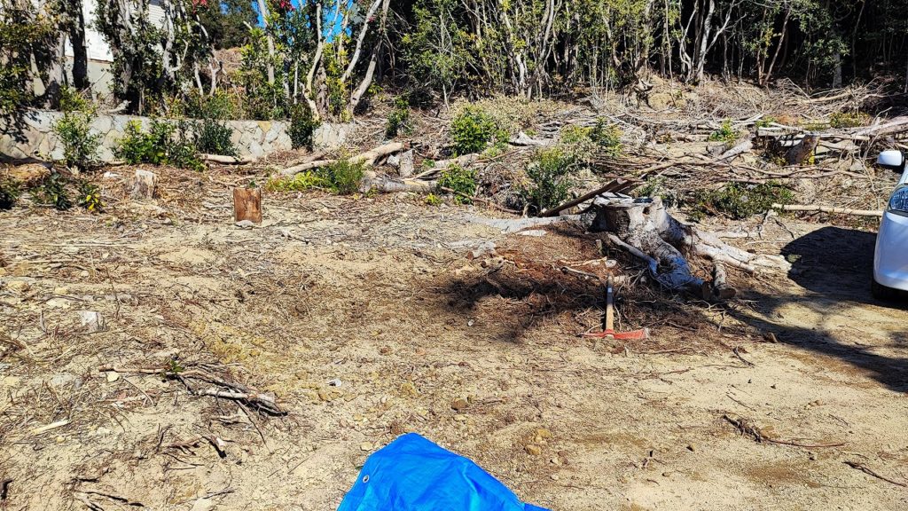 今回のメインの作業は太い根っこを撤去することと、傾斜地の改善。m(__)m