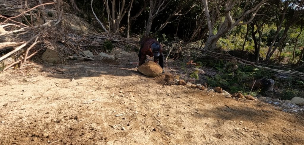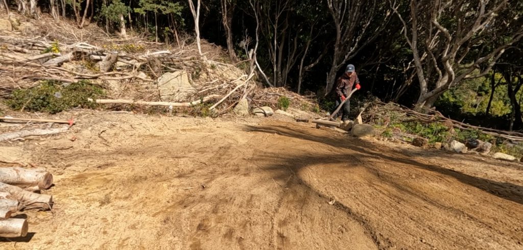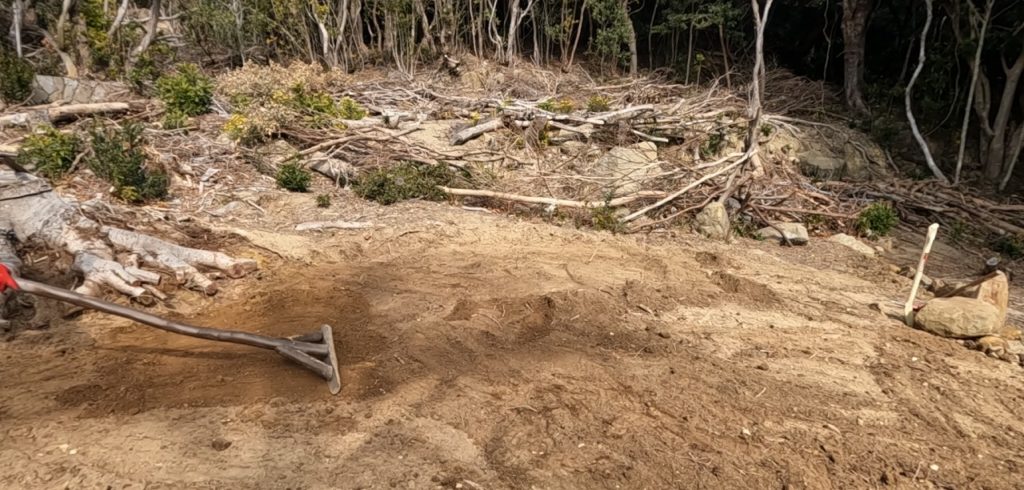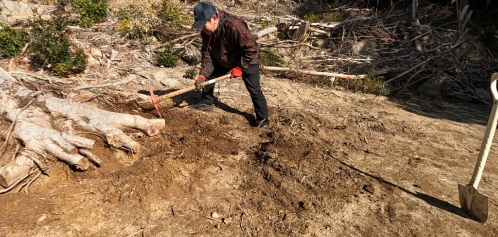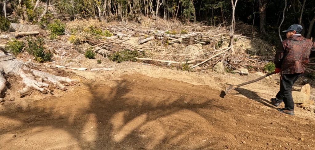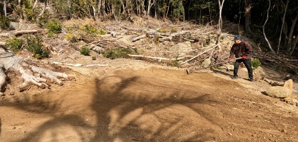 切り株の撤去作業、そして整地