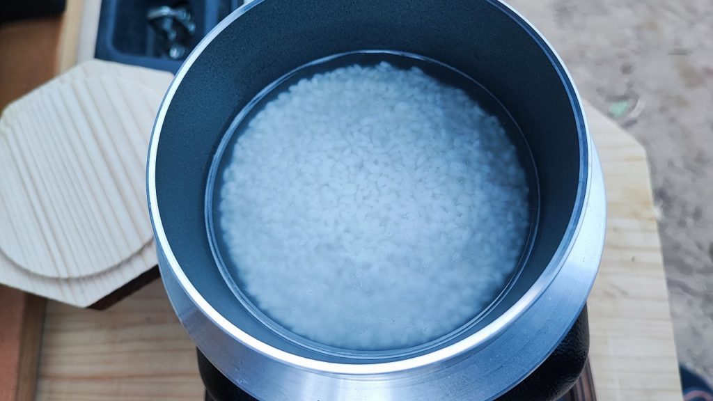 お釜かまどセットは1合タイプで固形燃料で炊飯するタイプなので楽々自動炊飯が出来たが、若干コーティングにムラがあるのが難点