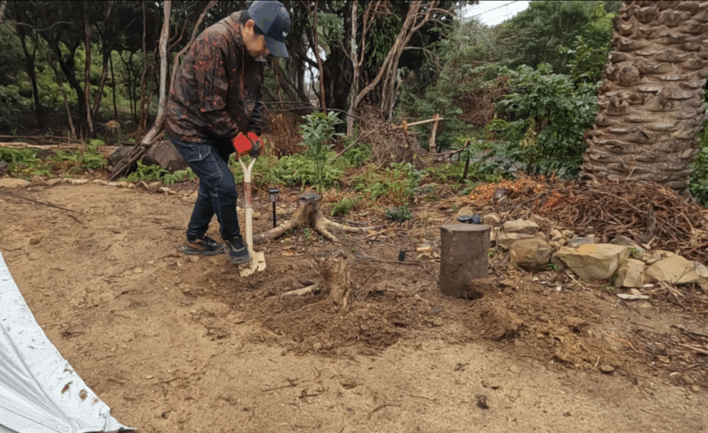 見た目以上に大きく、手強い切り株に苦戦しましたが、降り出した雨に少し濡れながらも、なんとか無事に撤去完了🙌 やったー!