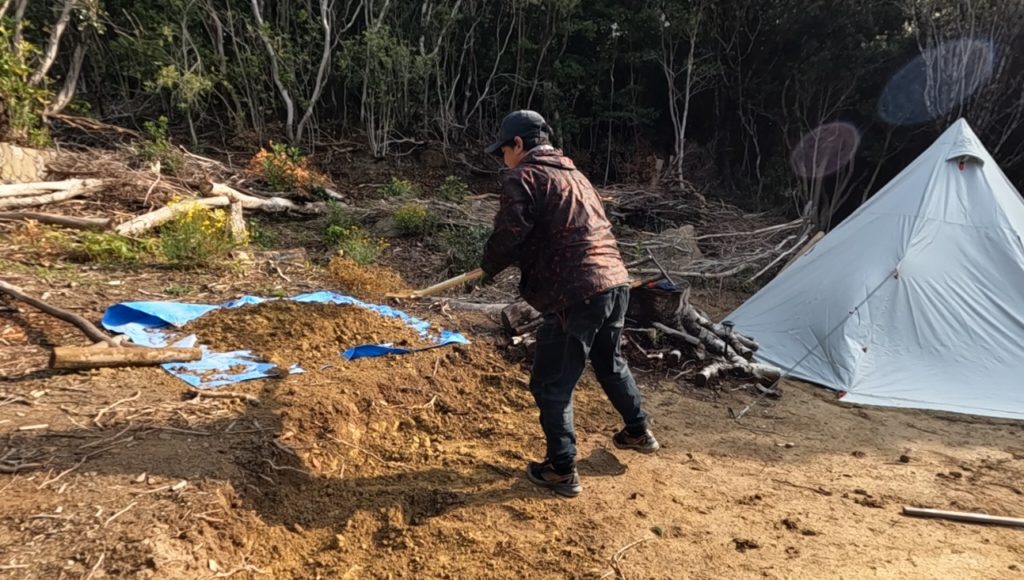 雨上がりを狙って整地作業!ツルハシが唸る