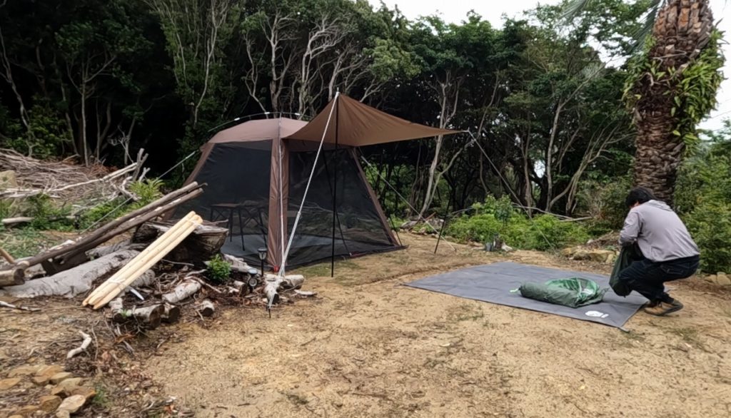 タープの前にいつものドームテントを設営し、とりあえずホッと一息。