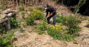 新しい柵の取り付けと同時に、以前の柵を解体して使えそうな枝は、今回の柵に再利用♻️ エコですね!