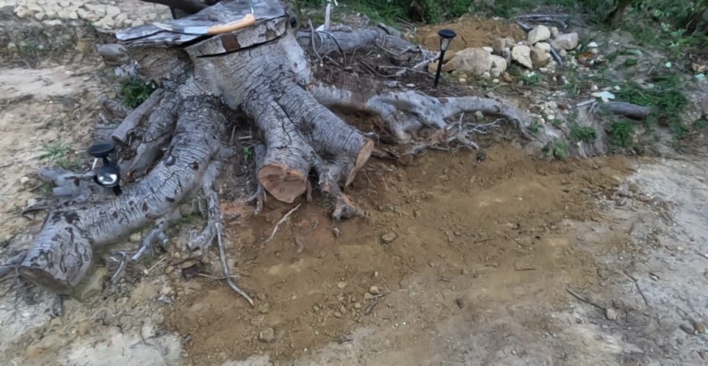 その間に、昨日暑すぎて諦めていた太い根っこを切り離す作業に取りかかりました。めちゃくちゃ苦労しましたが、何とか切り離しに成功!