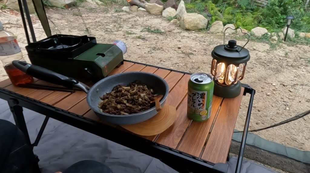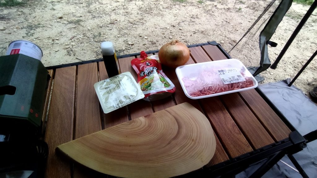 少しキャノピーの下で夕涼みをしてから、晩飯の準備に取り掛かる。今日の献立は、タマネギと牛ひき肉のキーマカレーだ。最近、この異常な暑さのせいか、食中毒のニュースをよく耳にするので、手指や調理器具を入念に消毒した。