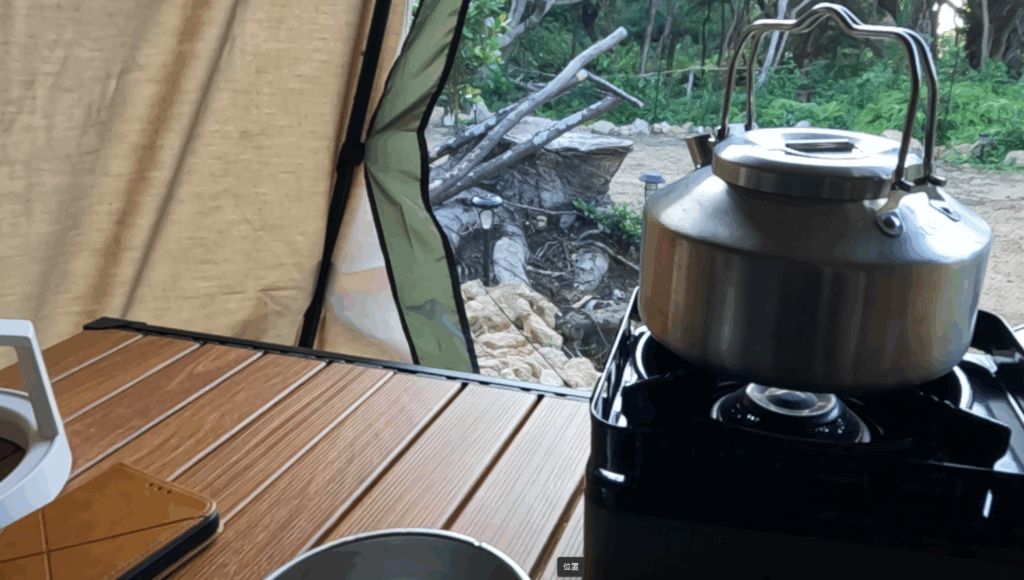5時半に起床し、少しだけ寝床でうだうだしてから6時に行動開始。まずは眠たいので、お湯を入れるだけで完成するインスタントコーヒーを淹れます。こういう場所で飲むインスタントコーヒーは、格別にうまいんですよね😋