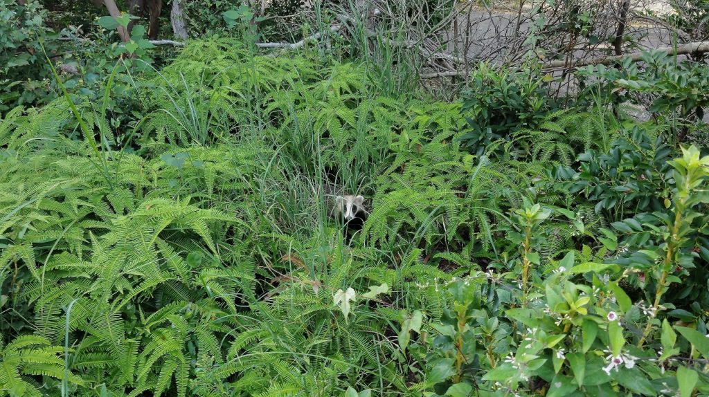 アナグマさんはしばらくココスヤシの実をムシャムシャ食べていましたが、食べ終わると愛らしい尻尾をフリフリさせて帰っていきました。ちなみに、散らばっていたココスヤシの実を大半片付けてくれてた😁。なんかありがたいね!