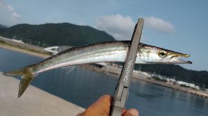 釣れたてカマスと出会ったアナグマ