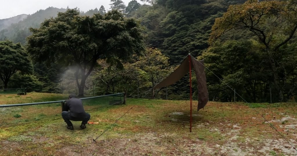 タープを張り終える頃には、頭からズボンまで文字通りずぶ濡れ…そして、尋常じゃない寒さ!