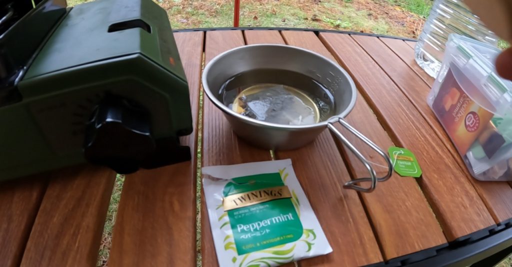 ひとまずテーブルと椅子を取り出し、暖かいハーブティーとオニオンスープで体を温めます。そうこうしているうちに友人も無事到着。